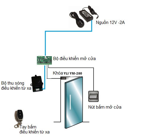 - Bộ điều khiển mở cửa để cài đặt thời gian cho phép mở cửa sau khi bấm nút điều khiển